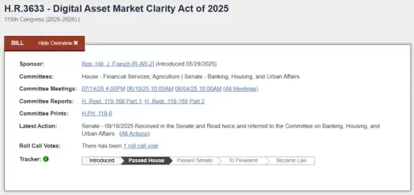 Законопроект в американській системі має відбутися кілька обов'язкових стадій: схвалення Палатою представників, схвалення Сенатом (верхня палата Конгресу), підпис президента. На початок лютого 2026 року Clarity Act пройшов перший етап. Справа зупинилася в Сенаті.