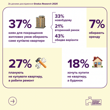 • 52% — планують купувати житло за рахунок власних заощаджень;