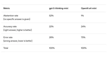 OpenAI досліджує, чому навіть найкращі моделі ШІ галюцинуютьOpenAI представив результати масштабного дослідження про те, чому великі моделі мови ШІ, такі як GPT-5, продовжують галюцинувати, і чи можна з цим щось зробити. Автори порівнюють нейронні мережі зі студентами на іспиті: якщо відповідь «Я не знаю» приносить нуль балів, вигідніше ризикнути і дати хоча б якусь відповідь. Цей метод заохочує галюцинації, оскільки залишає невеликий шанс, що ШІ вгадає правильну відповідь. На думку авторів, причина криється в самій системі оцінювання. Популярні бенчмарки — від MMLU до SWE-bench — використовують бінарний принцип «правда/хиба». В результаті моделі змушені вгадувати, а не чесно визнавати невизначеність. Це чітко видно в таблиці нижче: